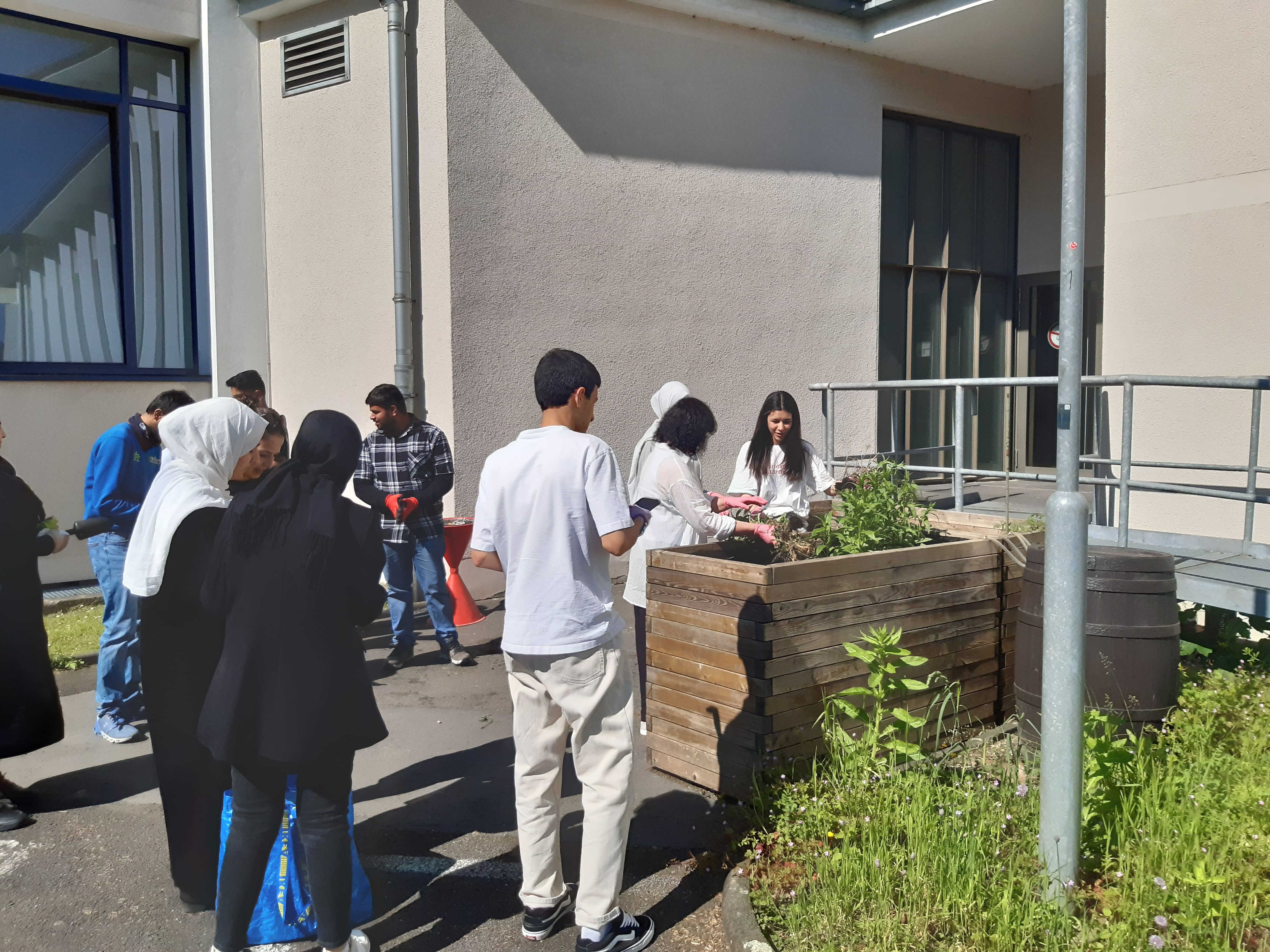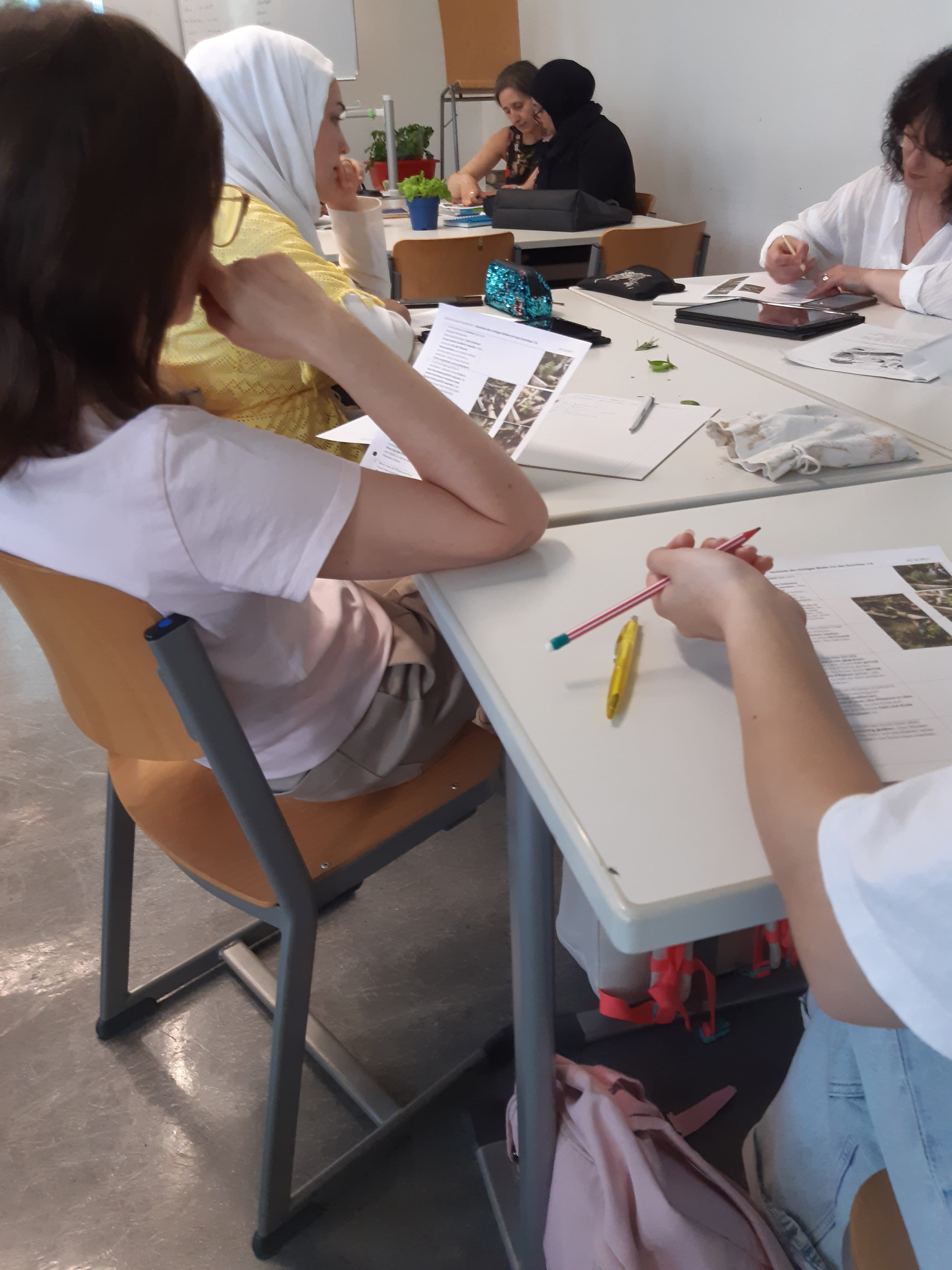 Saksa toisena kielenä -opetuksen lisäksi seurasin valmistavan koulutuksen biologian, matematiikan ja englannin opetusta. Biologian oppitunti oli erityisen mielenkiintoista, sillä opetus oli kielitietoista ja toiminnallista. Ensin opiskeltiin aiheeseen liittyviä käsitteitä ja lopuksi mentiin ulos istuttamaan koulun pihalla oleviin viljelylaatikoihin yrttejä sekä tomaatin ja mansikan taimia. Kaikki tämä tapahtui tietysti saksan kielellä.
