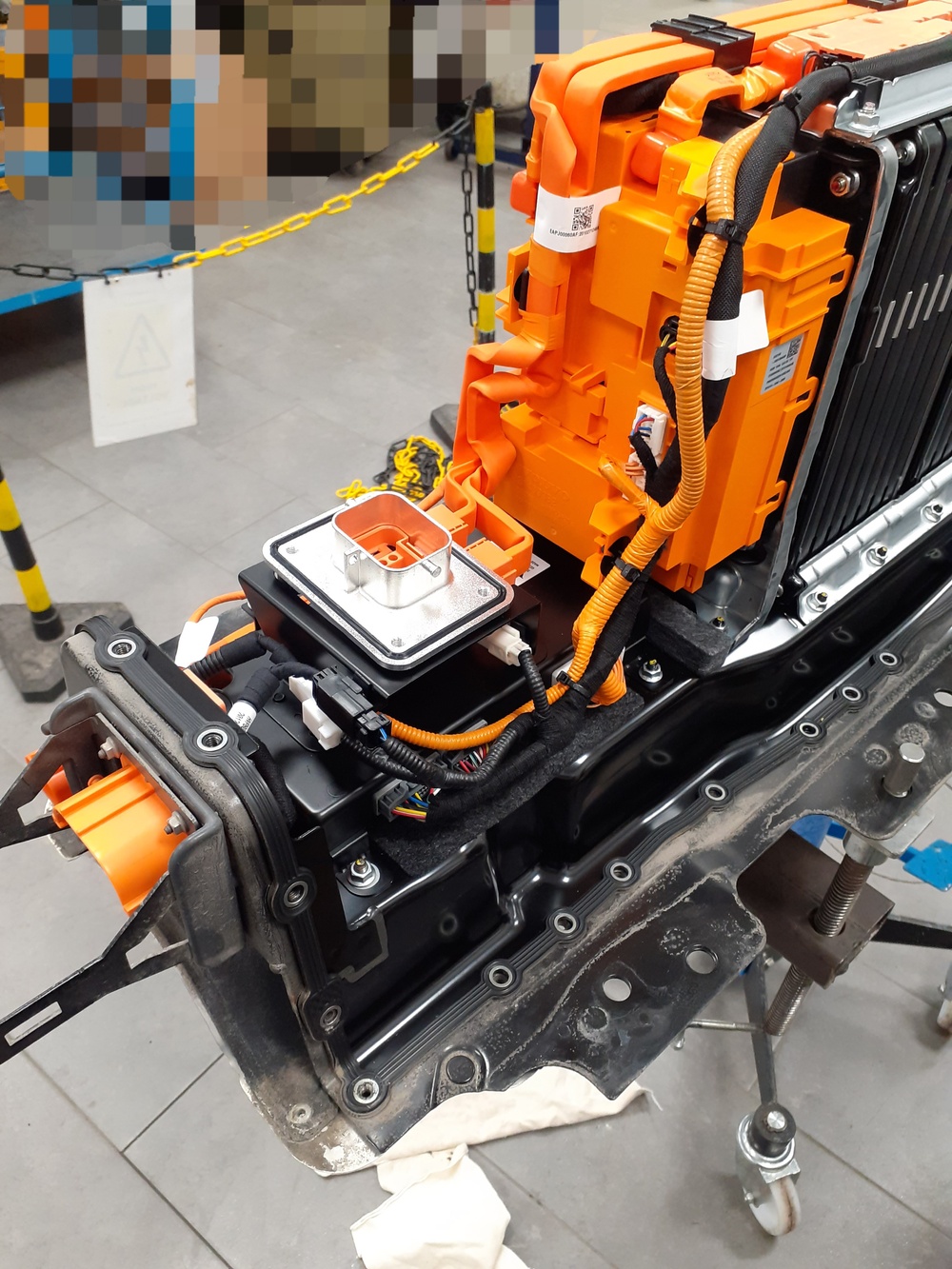 Kontaktoriyksikön vaihtotyö osoitettiin diagnoosimekaanikkojen työtiimille, ja minä pääsin seuraamaan, kun yksi heistä teki tämän vaihtotyön. Kontaktoriyksikkö sijaitsee korkeajänniteakun päällä, joten vaihtotyö vaatii korkeajänniteakun irrotuksen auton pohjasta.