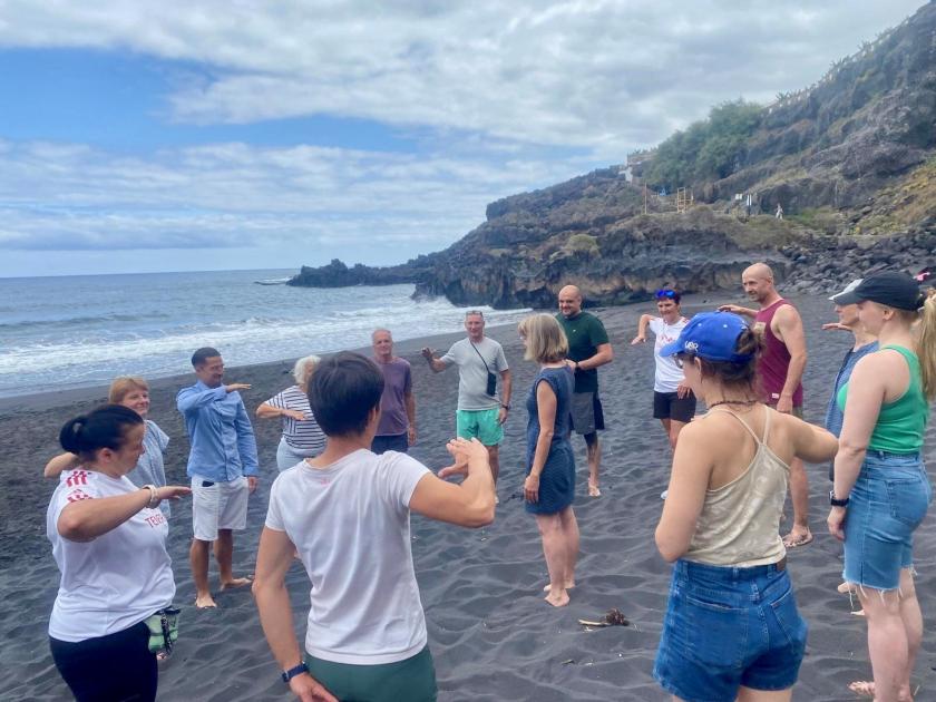 Tällä kurssilla ei luokkahuoneessa istuttu, vaan kaikki kurssipäivät vietettiin patikoiden tukikohtamme Puerto de la Cruzin liepeillä tai kauempana kaupungista, kuten Anagan luonnonpuistossa ja Teiden kansallispuistossa. Tutustuimme paikalliseen luontoon ja opimme paljon Kanariansaarten eliölajeista ja vulkaanisesta syntyhistoriasta. Retkien aikana kokeilimme erilaisia pelejä, leikkejä ja aktiviteetteja, joilla voi tukea itsevarmuuden, johtajuuden ja yhteisöllisyyden kokemusten kehittymistä opetusryhmässä. Osallistuimme itse retkipäivien suunnitteluun, jotta jokainen saisi osaamista ja kokemusta inspiroivien ja onnistuneiden opetustuokioiden järjestämisestä luonnon keskellä.